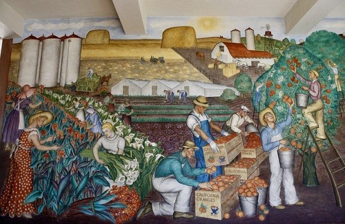 "Orange pickers in California fields" by Maxine Albro
